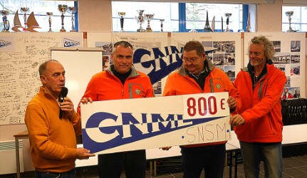 Samedi 22 novembre, au CNML, le président Philippe Brivoal a remis un chèque de 8OO € à Thierry Diméet responsable de la station SNSM du Pays de Lorient.
